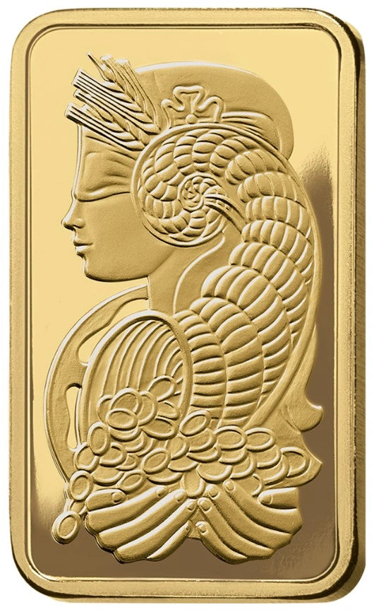 The 5g Lady Fortuna gold bar depicts the distinctive Lady Fortuna image which is recognised globally. PAMP became the very first refiner to decorate their gold bullion bars when they adopted the Lady Fortuna image in 1979. The Lady Fortuna gold bar features the Roman goddess of prosperity, presented in superb detail with a dazzling, proof-like finish.